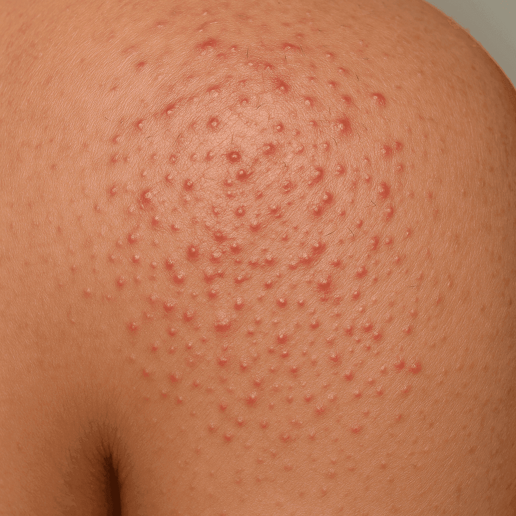 Symptoms include small, red papules that can be painful and itchy. They often occur on areas of the face where the skin is most often shaved. In some cases, they can lead to bacterial infections, requiring additional treatment.