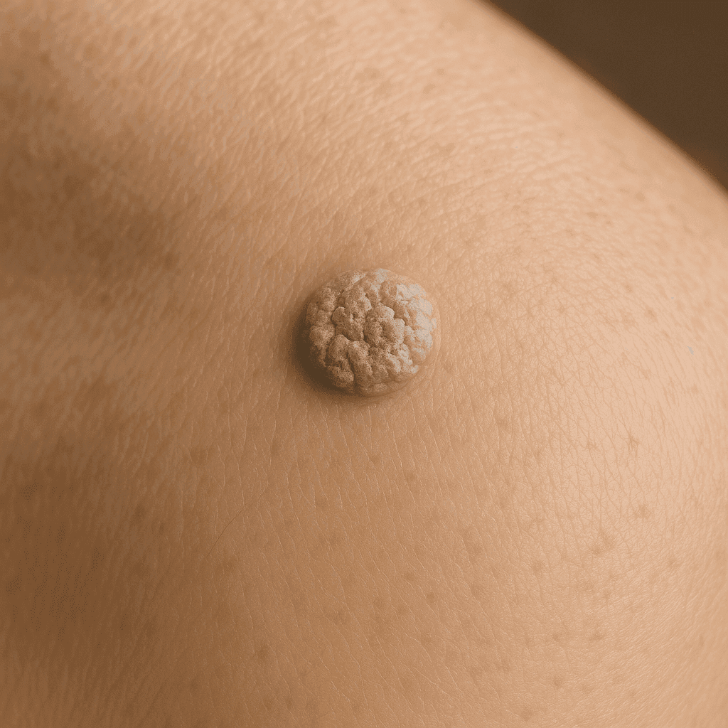La verrue vulgaire est une lésion cutanée bénigne causée par le virus du papillome humain (VPH). Elle se présente généralement sous la forme de petites tumeurs rugueuses à la surface irrégulière qui peuvent apparaître sur diverses parties du corps, le plus souvent sur les mains et les pieds. Ces verrues peuvent être isolées ou groupées.