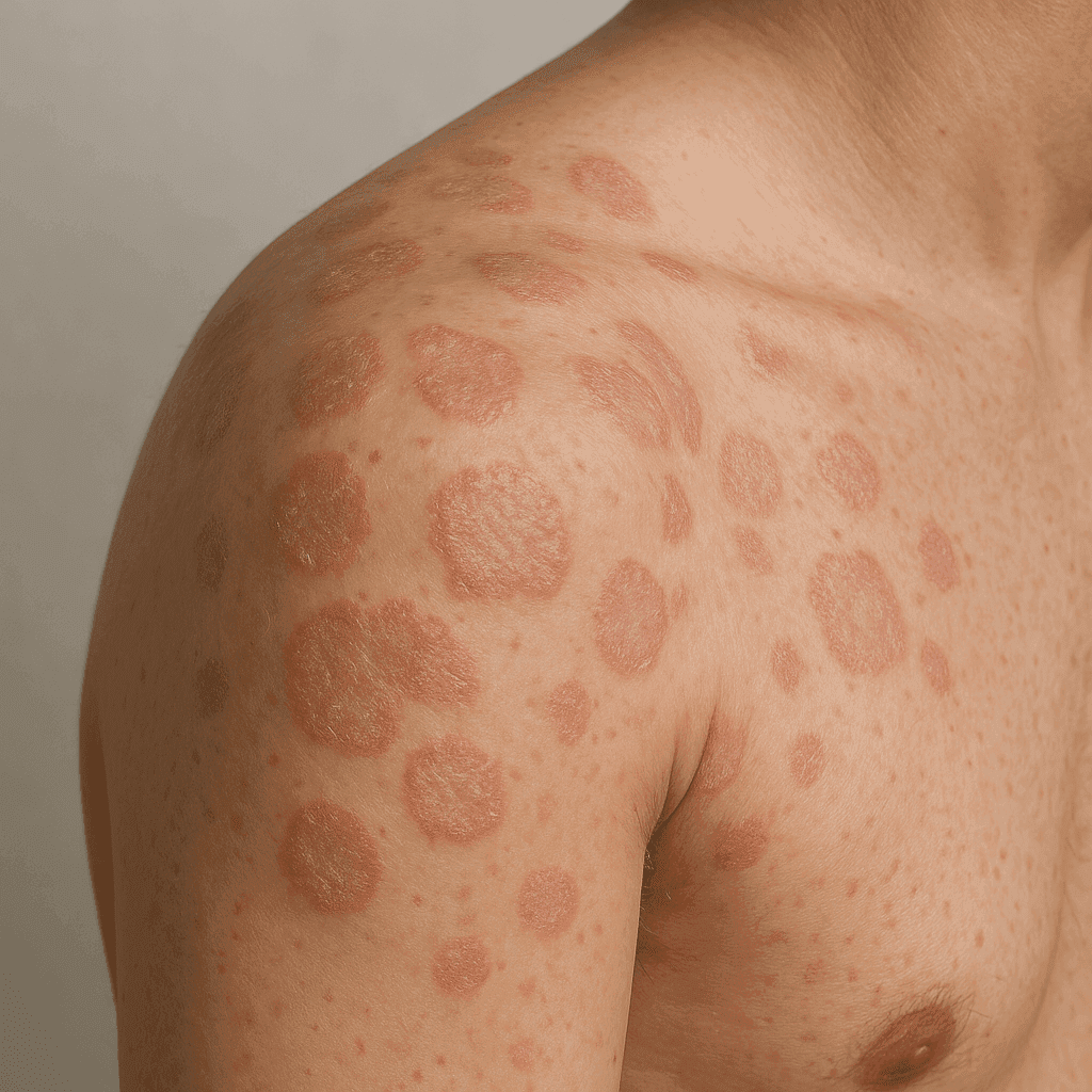 Ringworm is a common fungal infection characterized by a red, circular rash with a clearer center, giving it a ring-like appearance. It is not caused by a worm but by a group of fungi known as dermatophytes. Risk factors include close contact with infected individuals or animals, sharing personal items, and living in warm, humid environments.