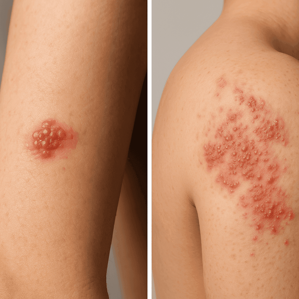 Choć oba schorzenia wywoływane są przez wirusy z tej samej rodziny, różnią się typem wirusa. Opryszczka jest wynikiem zakażenia wirusem HSV, podczas gdy półpasiec jest skutkiem reaktywacji wirusa varicella-zoster. Różnice występują również w objawach – opryszczka często dotyczy warg lub narządów płciowych, a półpasiec obejmuje większe obszary ciała.